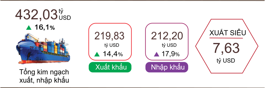 Xuất khẩu: 219,83 tỷ USD (+14,4%)